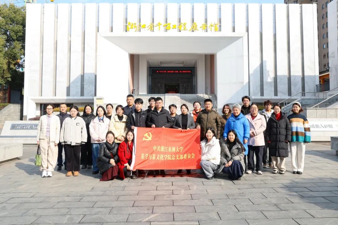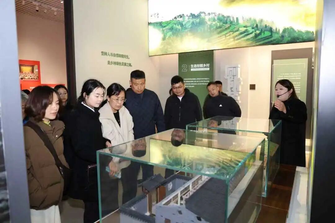 随后,一行人前往浙江省“千万工程”展示馆。馆内一张张老照片、一组组对比数据、一个个鲜活案例,清晰勾勒出“千村示范、万村整治”工程的思想轨迹、发展脉络与辉煌成效,生动展现了花园村等无数乡村在政策指引下,从“脏乱差”到“美富康”的华丽转身。党员师生们驻足凝视、认真聆听、深入交流,深刻体悟到“千万工程”背后蕴含的生态理念、为民情怀与系统思维,更真切印证了“党建带全局”的深刻真理——只有党组织当好“领头雁”,才能凝聚起乡村发展的强大合力,激活绿色发展的“一池春水”。大家纷纷表示,要将这份感悟转化为工作学习的动力,自觉践行绿色发展理念,为乡村生态振兴贡献力量。